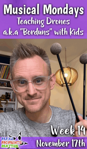 This week I shared about how I review different drone or “bordun” patterns with kids for accompaniment on pitched percussion instruments. You can find the video on my YouTube Channel here. Here’s a quick recap of all the links, resources, and references I talked about during the video: